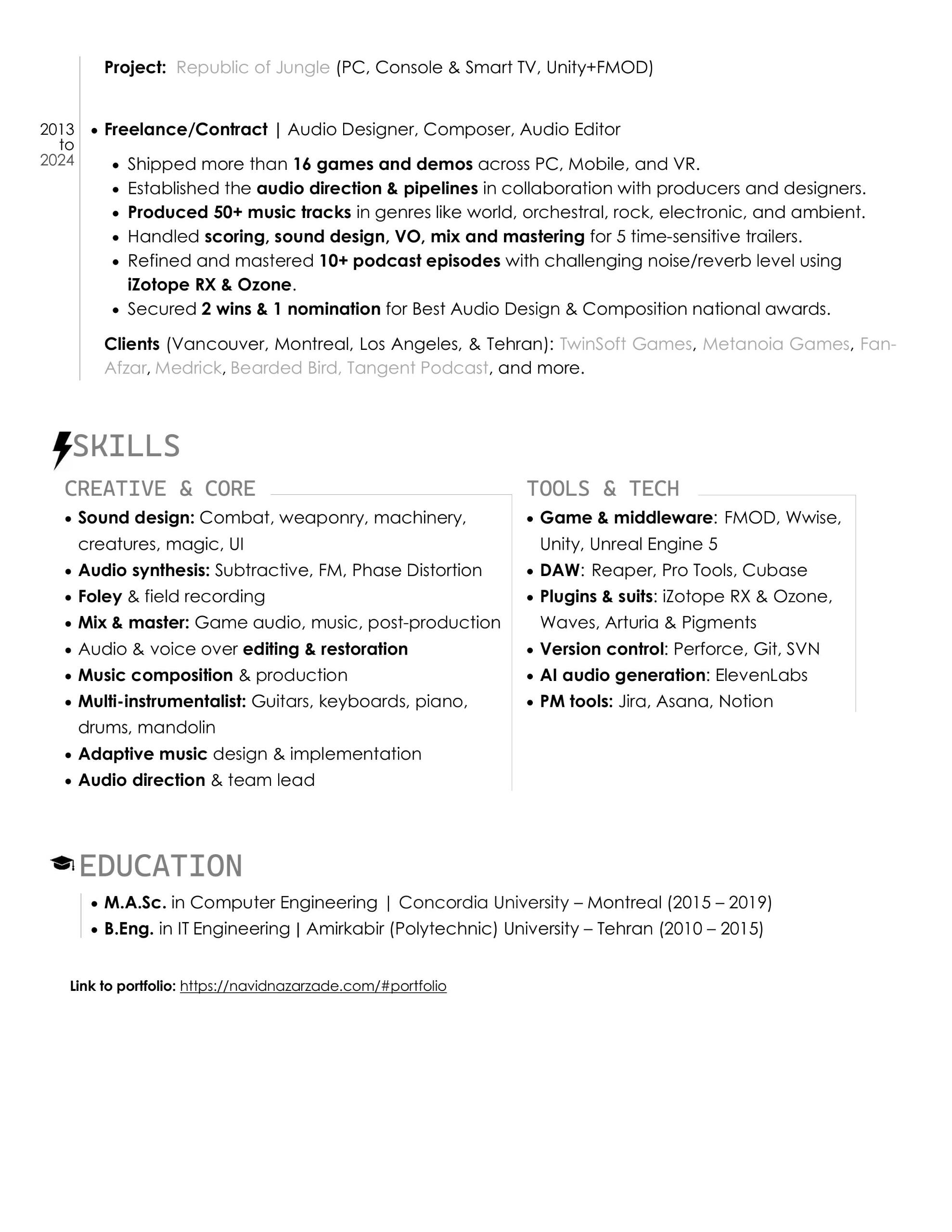 I am an Audio Lead, Sound Designer, and Composer who creates end-to-end immersive audio experiences for video games. From designing engaging sound effects to composing captivating music and integrating them seamlessly into gameplay, I ensure each project delivers a unique and immersive auditory experience.Credits highlight: Tomb Raider: Reloaded, Vikings: Valhalla, Star Trek Legends.